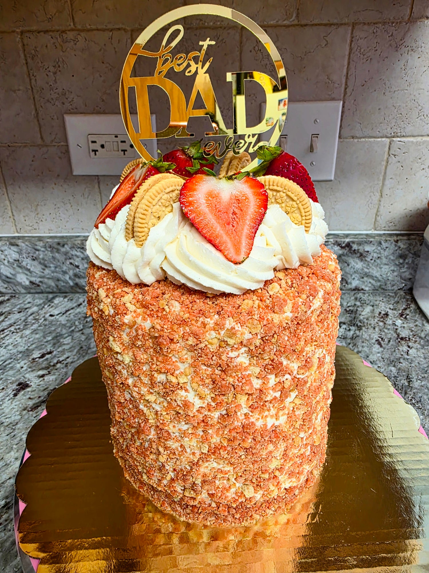 A dreamy fusion of two beloved desserts—this Strawberry Shortcake Cheesecake Cake features layers of moist vanilla cake, rich and creamy cheesecake, and fresh strawberry filling. Each bite is a perfect balance of sweet, tangy, and velvety textures, topped with whipped cream and a generous sprinkle of golden shortcake crumble. It’s the ultimate treat for strawberry lovers and a showstopper for any occasion.